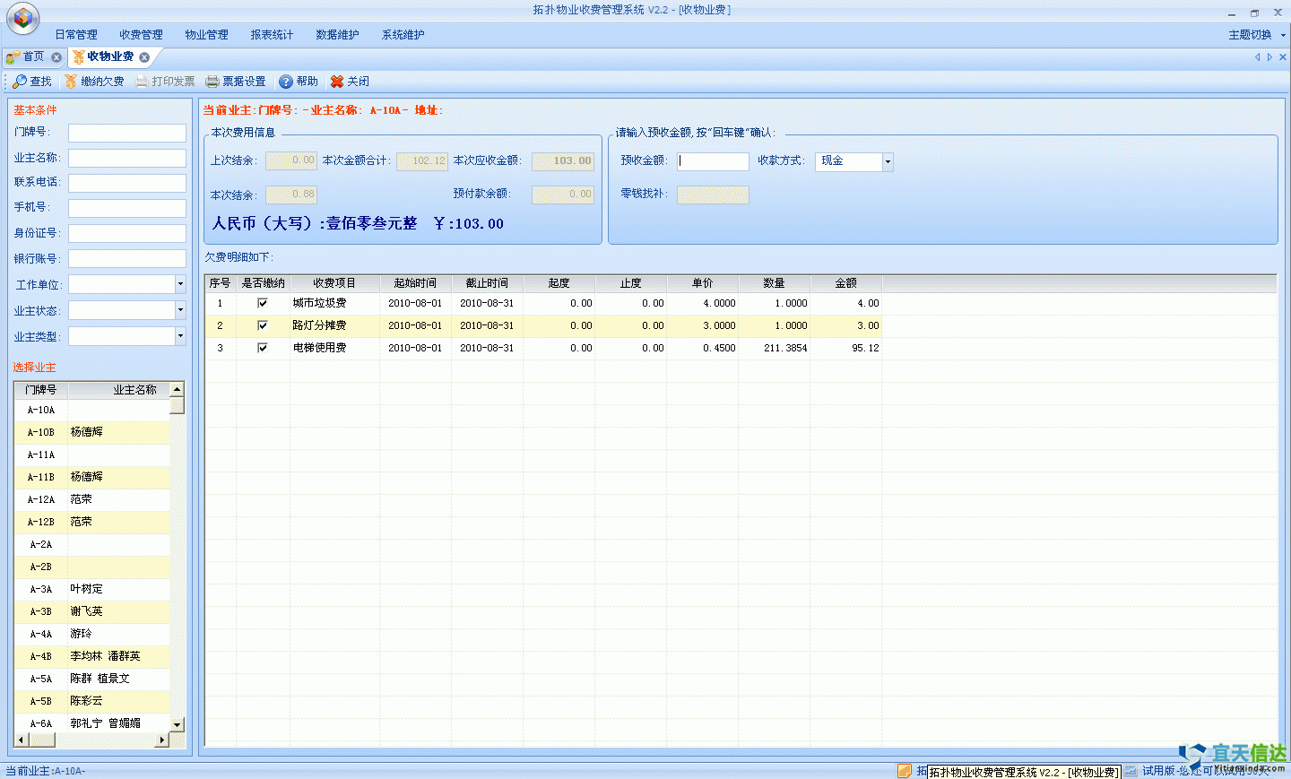可以查看選定的業(yè)主檔案詳情;