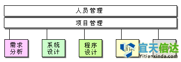 軟件工程的主要環(huán)節(jié)包括人員管理、項(xiàng)目管理、需求分析、系統(tǒng)設(shè)計(jì)、程序設(shè)計(jì)、測(cè)試、維護(hù)等,如圖所示。軟件開發(fā)模型是對(duì)軟件過程的建模,即用一定的流程將各個(gè)環(huán)節(jié)連接起來,并可用規(guī)范的方式操作全過程,好比工廠的生產(chǎn)線。