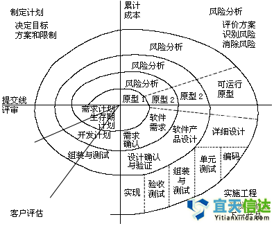 1988年,Barry Boehm正式發(fā)表了軟件系統(tǒng)開發(fā)的"螺旋模型",它將瀑布模型和快速原型模型結(jié)合起來,強(qiáng)調(diào)了其他模型所忽視的風(fēng)險(xiǎn)分析,特別適合于大型復(fù)雜的系統(tǒng)。